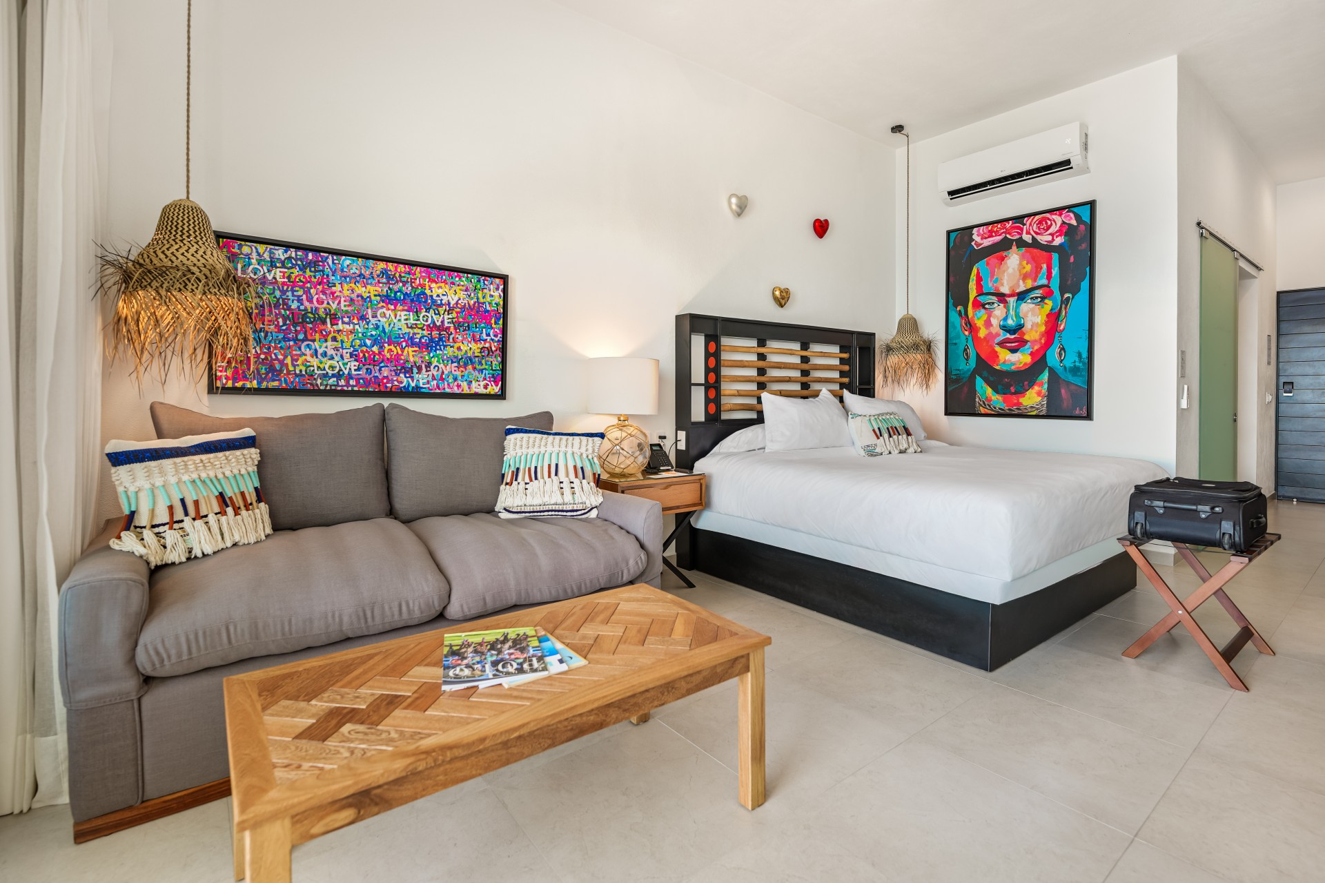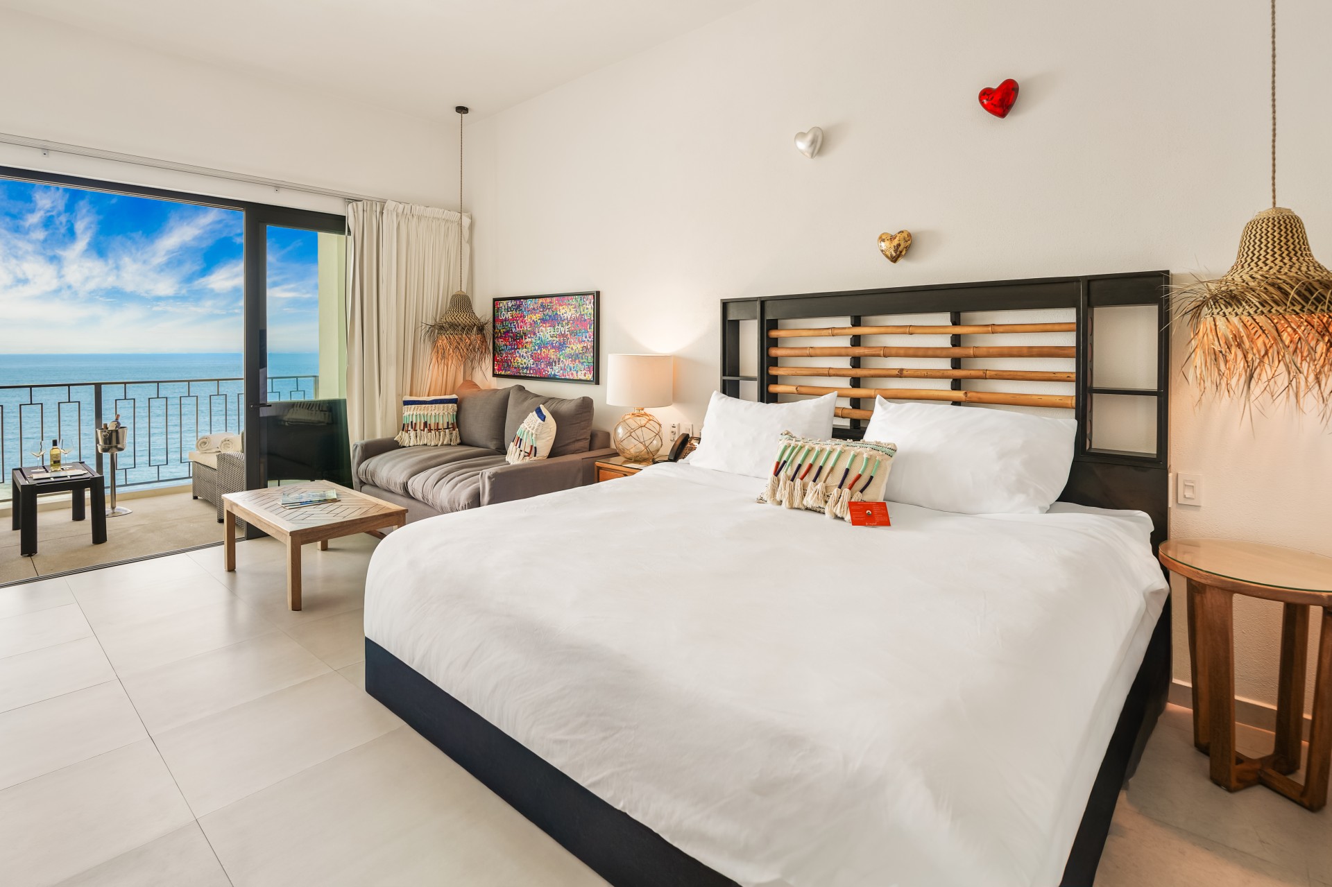 Unwind in this spacious room featuring two comfortable queen beds, plus a breathtaking oceanfront balcony with mesmerizing views. Whether it's a vibrant sunrise or a tranquil sunset, the scenery promises a truly memorable stay in Sayulita.